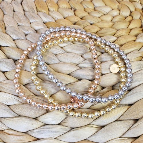 - Title : Yellow Gold over Sterling Stretchable Beaded Bracelet