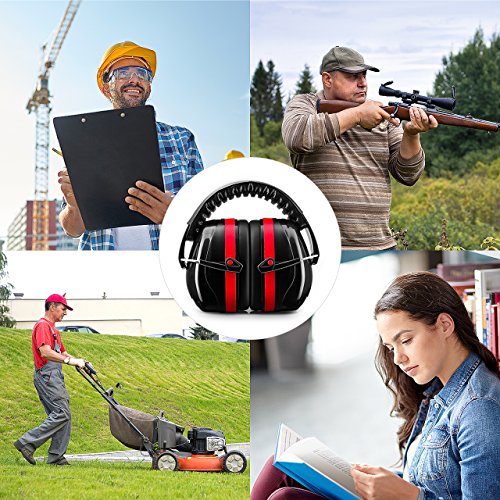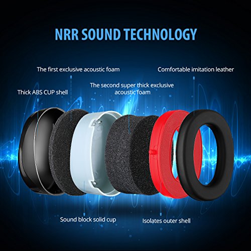 -. Feature : NRR SOUND TECHNOLOGY, ANSI S3.19 & CE EN521 CERTIFIED: This ear muffs designed with 2 layers of professional noise dampening foam, high sealing solid cup and the unique double-shell, the ear muffs offer a SNR 34dB / NRR 28dB(Noise Reduction Rating) for ears. NOTE: This ear muffs is passive noise isolating, NOT active noise cancellation(ANC). (No Batteries Needed) / ANSI S3.19 & CE EN521 CERTIFIED: Lab tested and certified to US and European standards. Professional ear defenders for shooting at the gun range. / ADJUSTABLE HEADBAND DESIGN: Designed with retractable stainless steel at the end of headband, the ear muffs can be adjusted to fit all sizes. / COMPACT AND PORTABLE: Our lightweight ear muffs feature a foldable style as the ear cups collapse into the headband. Travel drawstring bag included for ease of packing them or to neatly store away, dust-free. / SILENT YOUR WORLD: Ideal for shooting, hunting, sports events, concerts, festivals, studying and operating machinery to protect hearing, especially suitable for work in construction and landscaping work.