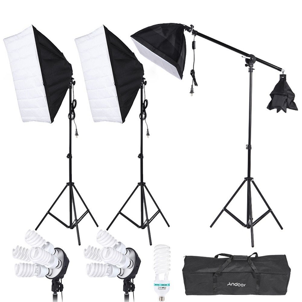 Finally, you can place a 40 * 40 cm soft box on the arm.