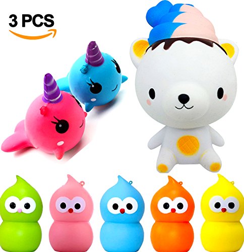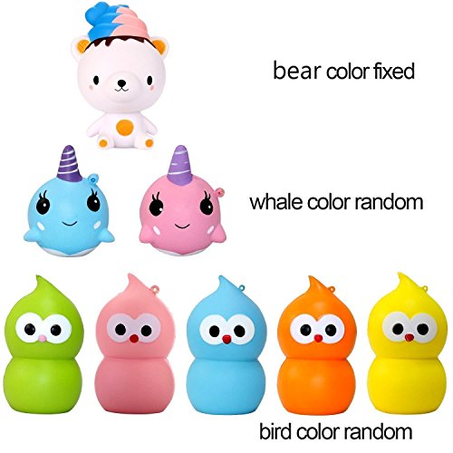 -. Title : Jumbo Slow Rising Squishies Cute Squishy Animals Toys 3 Pcs - Random Color Cute Bear, Bird, Whale Squishies Cream Scented Stress Relief Kawaii Decoration Gift For Kids and Adults