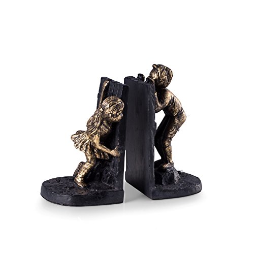 Paloma Collection AJ-R11O Resin Cast "Peek-A-Boo" Bookends, Black/Gold