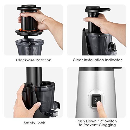 Low Speed With Quiet Motor- Powerful yet energy-efficient 150W motor,80RPM with lower noise compared to centrifugal juicers and retains more vitamin and nutrition.