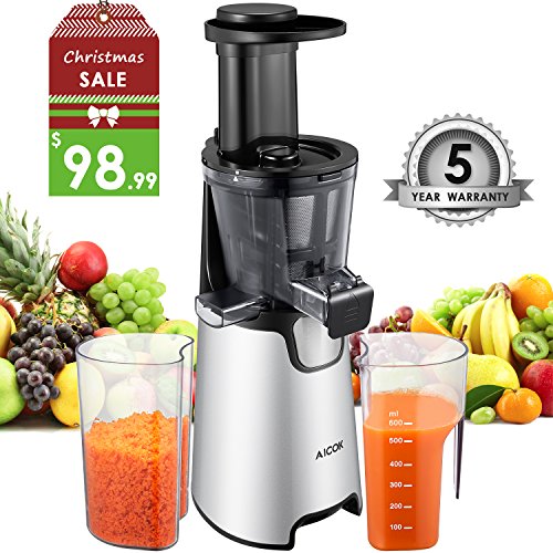 Aicok Masticating slow juicer is preserving more vitamins and enzymes for naturally nutritious, delicious fruits and vegetables juice, frozen treats and more. It's time to have a full of healthy and nutrient body! Product Feature * Low noise operation - The low speed can work with low noise, never disturb family when operation.