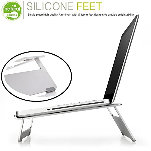 Silicone feet designs:Single piece high quality Aluminum with Silicone feet designs to provide solid stability; precise details enhance your experience.Silicone feet designs provide stable status for laptop.The silicon film on the support frame is designed to protect your desktop from scratch.On the plane of the silicon strip design can better protect your notebook avoid scratches.