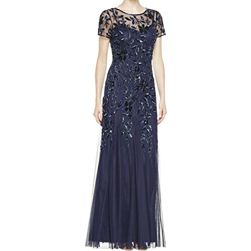 Adrianna Papell Women's Floral Beaded Godet Gown, Lead, 6