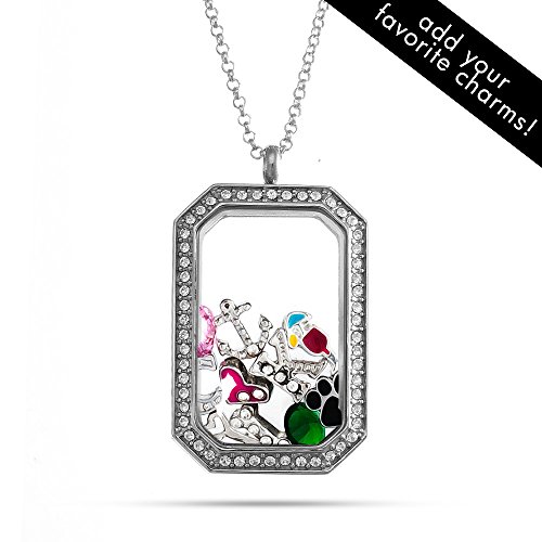 You are sure to love our newest addition to our Floating Locket collection - our CZ Dog Tag Build A Charm Floating Locket! This CZ Dog Tag Locket measures apx. 1.5" long and 1.125" wide. It opens easily with a magnetic closure and can hold at least 7 to 10 of your favorite charms. This Dog Tag Floating Locket comes in a 24" rolo chain. Pair it with a different locket chain or dangling charm for a versatile look!Feature