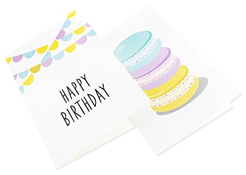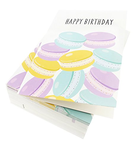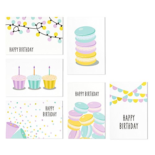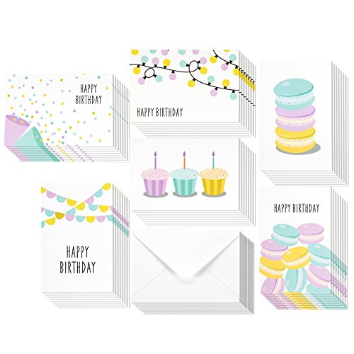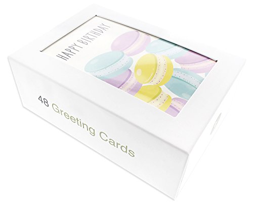 48 Pack Happy Birthday Greeting Cards - Bulk Box Set Assortment - 6 Dessert Macaroon Cupcake Pastel Designs - Envelopes Included 4 x 6 Inches