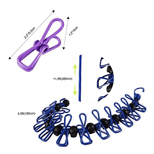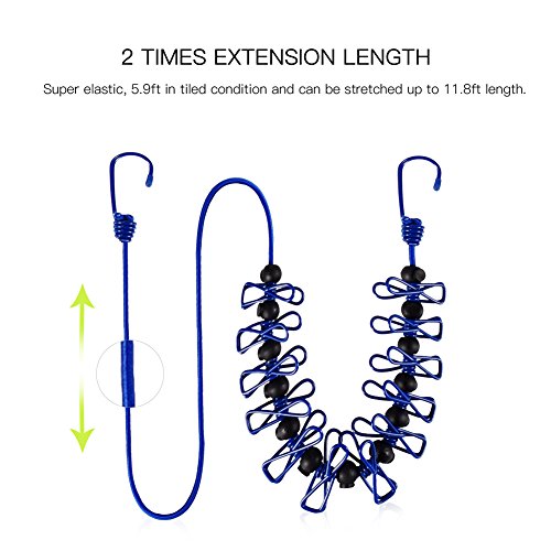 Super Elasticity- Extremely stretchy 5.9ft clothesline with clothespins, can be freely stretched(maximum length up to 11.8ft). Sturdy and durable to use.