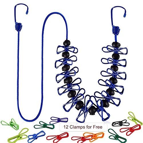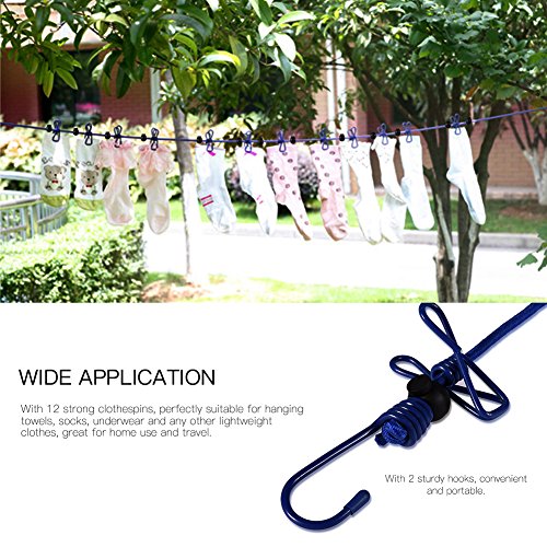 Uarter 5.9ft Elastic Clothesline Windproof Clothes Line Adjustable Washing Line with 12 Clothespins for Outdoor and Indoor Use, 12 Free Colorful Clothespins