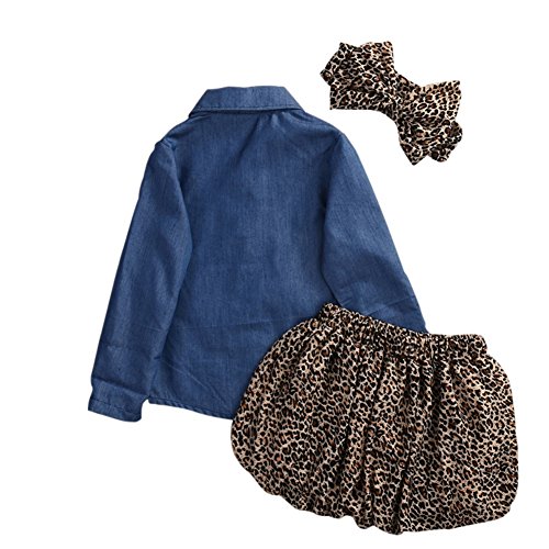 -. Title : Zhengpin 3PCS HOT Baby Girl Denim Tops+ Belt+ Leopard Grain Dress Suit Set Clothing