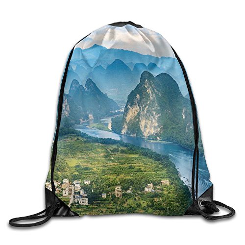 (TIA HICKS)/Accessories/Luggage, Bags Travel/DIRECT FROM USA/Overlook Mountains River City Black Friend Unisex Gym Drawstring Shoulder Bag Backpack String Bags