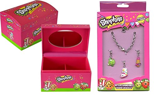 -. Title : Limited Shopkins Charm Bracelet Plus Jewelry Box With Mirror 4X3X2.6" -2 Pack