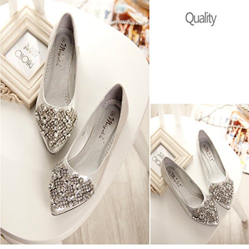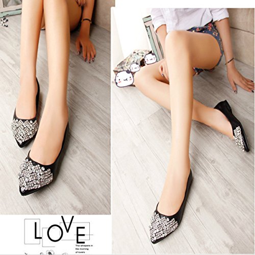Binding : Apparel Product Description 1.Please see the Size Reference to find the correct size. Size Chart : Our brand shoes 5 B(M)US =American Women Size 5 US=Tag Size (CN) 36 Our brand shoes 6 B(M)US =American Women Size 6 US =Tag Size (CN) 37 Our brand shoes 7 B(M)US =American Women Size 7 US =Tag Size (CN) 38 Our brand shoes 7.5 B(M)US =American Women Size 7.5 US=Tag Size (CN) 39 Our brand shoes 8 B(M)US =American Women Size 8 US =Tag Size (CN) 40 Our brand shoes 9 B(M)US =American Women Size 9 US =Tag Size (CN) 41 Our brand shoes 10 B(M)US =American Women Size 10 US =Tag Size (CN) 42 Product description: It has pointed and clean toe with rhinestone crystal, low heel, rubber sole, very stylish and comfortable. Not only suitable for ladies office or outing, walking, shopping, but also for driving, cycling and so on. Is a good shopping choice. Shoe Type: Flat Shoes Toe Type:Round Toe Closure Type: Slip On Heel Type:Flat Heel Height: 1.5cm Gender: Female Occasion: Casual,Office Season: Spring,Summer,Autumn Color: Black,Gold,Silver Material: Upper Material: Pu Outsole Material: Rubber Package included: 1 x pair of shoes(without box)