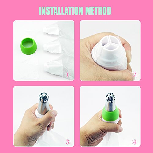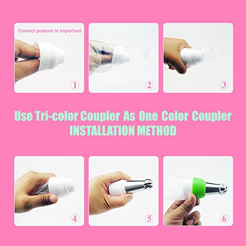 ❤ [FOOD SAFETY AND HEALTH]: Made of high quality 304 food grade stainless steel, The Tri-Color Coupler and disposable pastry bags are made of PP plastic which is BPA free and non-toxic