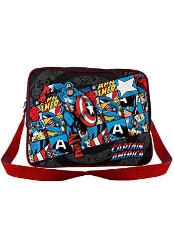 -. Title : "Retro Captain America" Messenger Bag (Black/Multi)