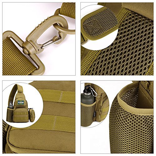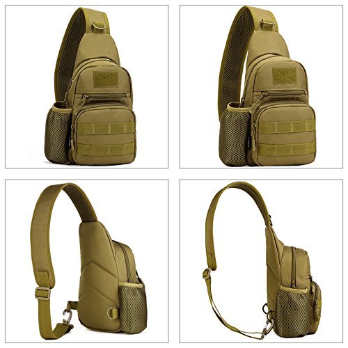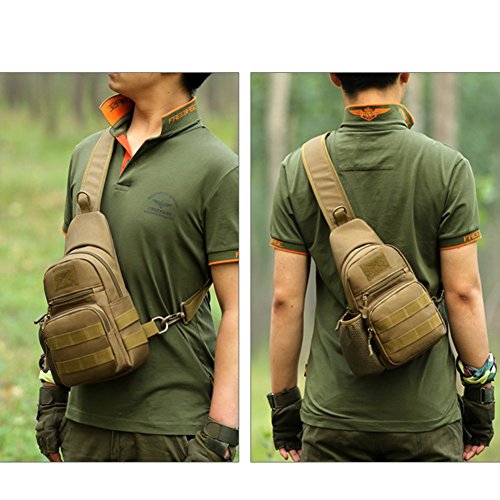 -. Feature : EASY TO CARRY --- Portable and simple design of main compartment with one water bottle holder pocket. Adjustable strap can perfectly suits your body shape. Portable and lightweight design is perfect for most outdoor or indoor activities, more comfortable than those which are too bulky or heavy / MULTI-FUNCTIONAL --- There are several carrying styles, can be used as a Messenger Bag, Chest Bag ,Shoulder Bag, Chest Sling - Back Sling, Backpack or Hand Carry, ideal for hiking, hunting, camping, riding, trekking, travelling etc / MOLLE SYSTEM COMPATIBLE --- MOLLE external expansion system designed to be used in combination with other equipments, you can add pockets, water bottles bags,accessory kits and any other equipments / ERGONOMIC DESIGN AND SUPERIOR MATERIAL --- The breathable sponge on the back and shoulder strap with cushion can help relieve pressure on the shoulder, high strength abrasion nylon and inner silky cotton make it heat dispel faster and resist water easier / SMALL ' COMPACT --- ApproP.R.Iate size fits for most people, zippered compartment and configurable molle system make your stuff storage organized