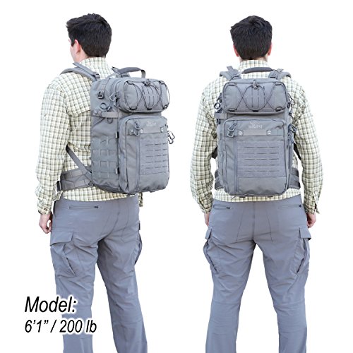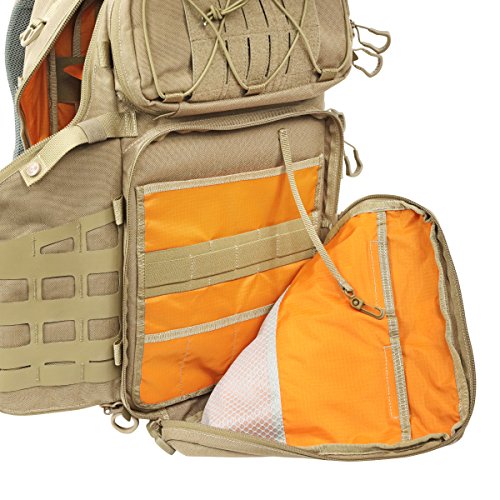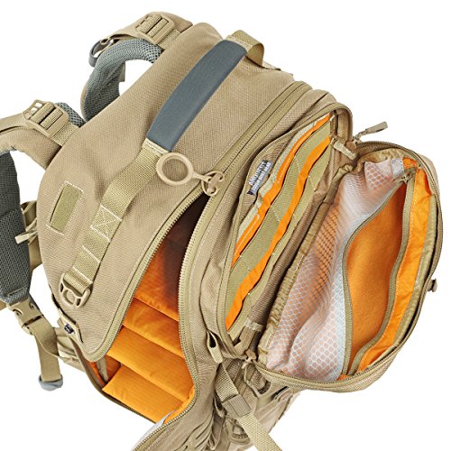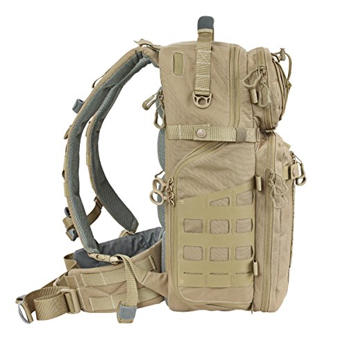 -. Feature : Total Capacity: 31 Liters | Main Compartment (Interior): 19.5" (H) x 11" (W) x 5.25" (D) / Padded interior holds laptop / tablets, cameras, and CCWs. / High-visibility, lightweight 210-D Ripstop nylon interior / 1,000-D Mil-grade Cordura® fabric with Durable Water Repellent (DWR) fabric protector / Total 44 organizing compartments and slots | Built-in Water Bottle Holder/Tripod Pocket