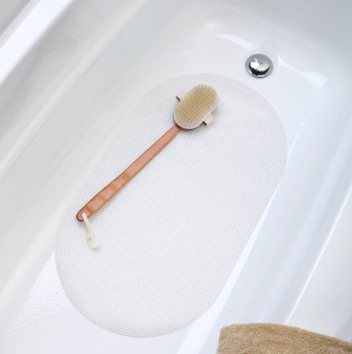 -. Title : Basket Weave Bath Mat - Wide White