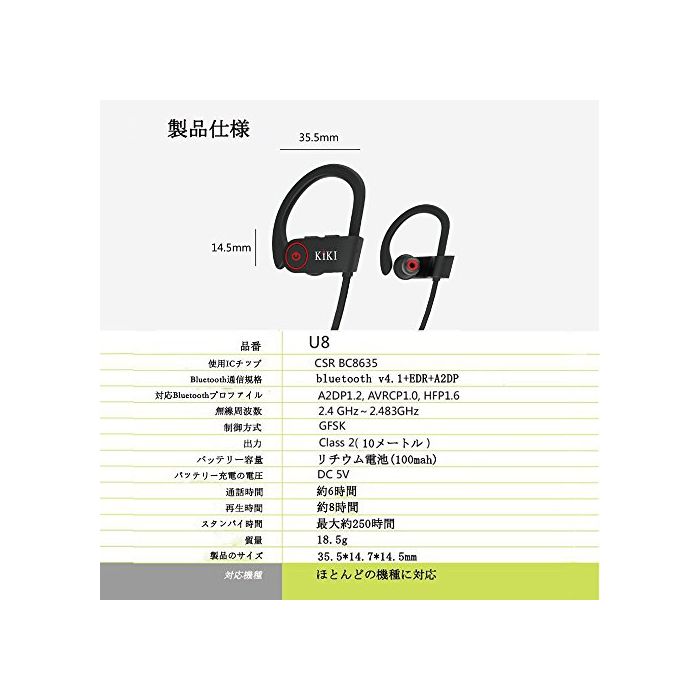 원본상품명: KIKI(キキ)bluetoothイヤホン 高音質スポツワイヤレスイヤホン IPX7完全に防水.防滴 CVC6.0ノイズキャンセリング 高音質マイク付き 大容量バッテリ8時間再生可能 ipho