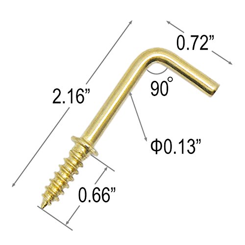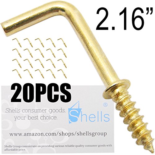 Shells 20PCS Gold Color Copper Plated Metal Right-angle Hooks 7 Shape Screw Hooks Self-tapping Screws Hooks L Shape Hooks 2.16 Inches 1+1/2#