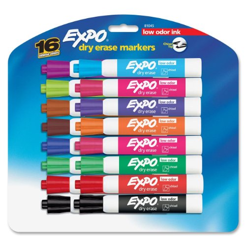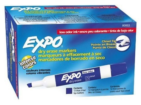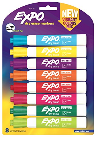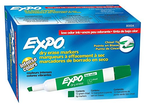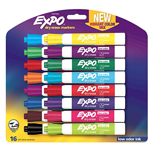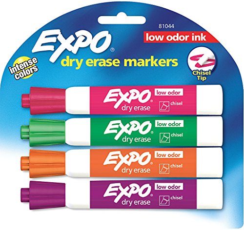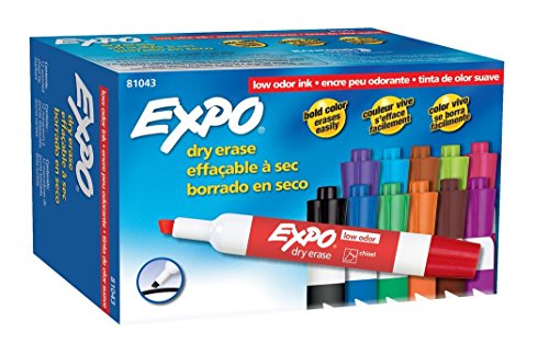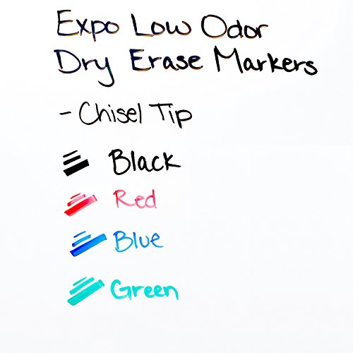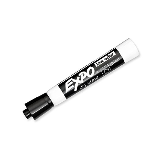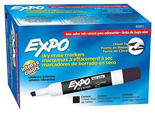 Bright, vivid, non-toxic ink is quick-drying, smear-proof, easy to see from a distance, and provides consistent color quality. Versatile chisel tip allows for broad or fine writing. Erases cleanly and easily with a dry cloth or Expo eraser. Ink is specially formulated to be low-odor. Perfect for use in classrooms, small offices, and homes. Made in the USA Expo 2 Low-Odor Dry Erase Markers, Chisel Tip, 2-Pack, Black.