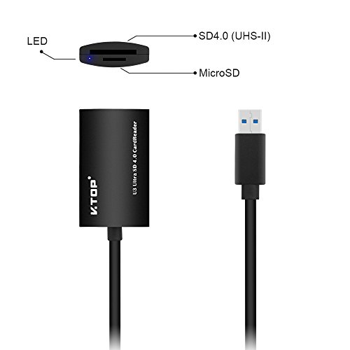 V.TOP External USH-II Usb 3.0 Card Reader for SD4.0 Sandisk SDHX / SDXC Memory Card with Fixed Usb3.0 Extention Cable for Lexar Professional 2000x Sandisk Extreme Pro UHS-II Memory Card B00XW5A9G0