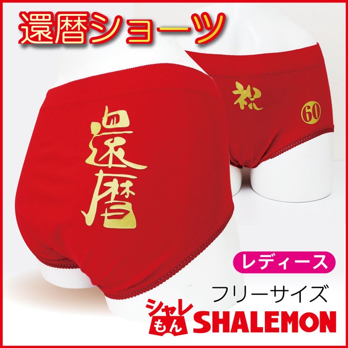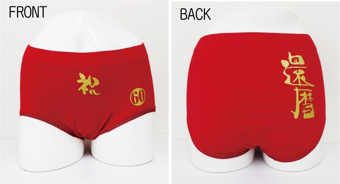還暦祝い 女性用下着 ショーツ 還暦パンツです。 実用性ある還暦祝いです。赤いショーツに豪華な金文字で還暦のデザインが施されております。