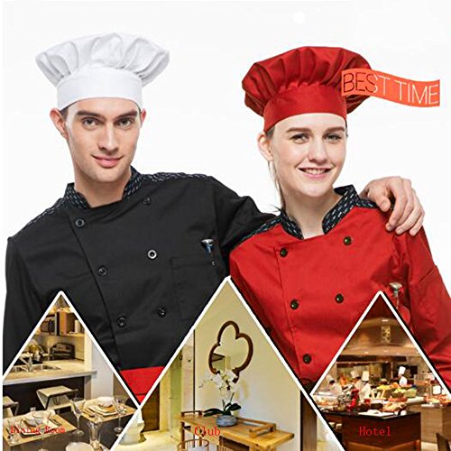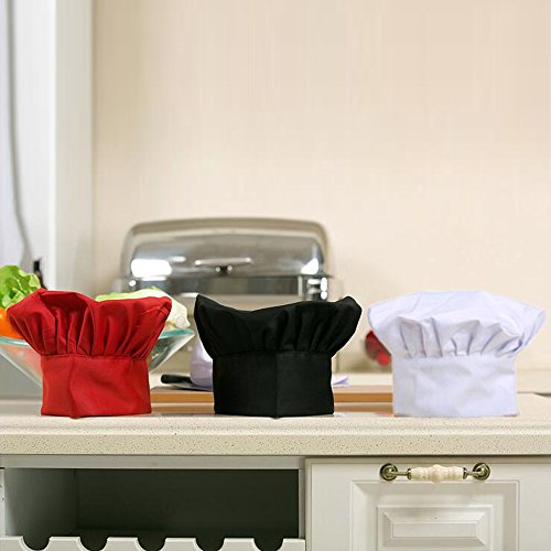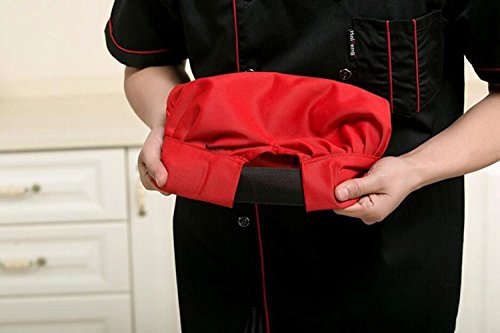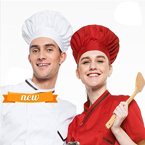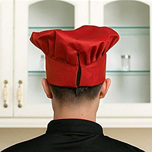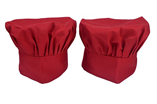 SMYLLS Chef Hat Adult Elastic Adjustable Size Poly Cotton Kitchen Ware Cooking Hat (Set of 2, Red)