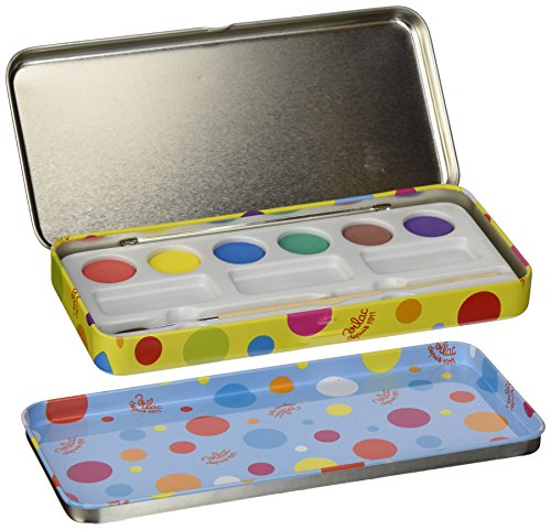 This tin painting set is designed in France and contains 6 paint cakes in a kaleidoscope of bright colors and 2 paint brushes. Recommended for children from 4 years of age.