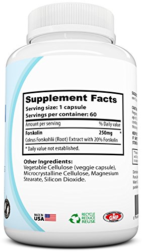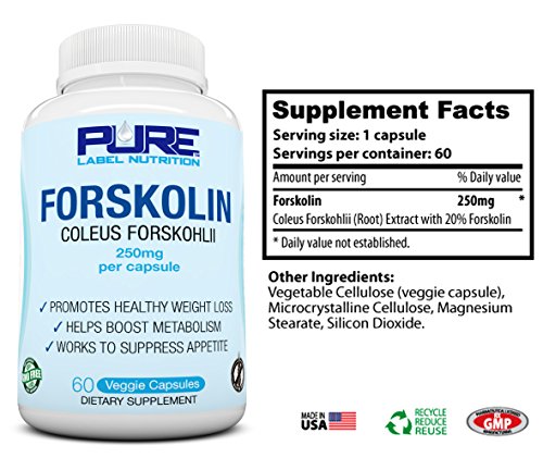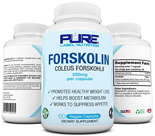 -. Binding : Health and Beauty -. EAN : 0646437159425 -. Feature : NATURAL WEIGHT LOSS w/ PURE FORSKOLIN - Boost Fat Burning, Increase Metabolism and Energy Naturally. / OPTIMIZE HORMONES - Improve and Optimize Thyroid Function Naturally with Forskolin 250mg. / PURE 20% COLEUS FORSKOHLII ROOT EXTRACT - PURE-F® Forskolin 250mg is the Highest Grade Available. / MADE IN USA - NO Fillers, NO Artificial Flavors, NO Colors, NO Animal Testing. Non GMP, Gluten FREE. / 100% MONEY BACK GUARANTEED - If you aren't 100% satisfied w/ your results, return for a full refund. -. IsAdultProduct : 0 -. Label : Pure Label Nutrition -. LegalDisclaimer : *These statements have not been evaluated by the Food and Drug Administration. This product is not intended to diagnose, treat, cure, or prevent any disease. Pure Label Nutrition is not liable for the authenticity of any of the information above. With the rapid rate of scientific studies these days, new information is validated and debunked daily. To maximize results, work hard in the gym daily and eat high quality nutrition. -. Manufacturer : Pure Label Nutrition -. PackageQuantity : 1 -. ProductGroup : Health and Beauty -. ProductTypeName : HEALTH_PERSONAL_CARE -. Publisher : Pure Label Nutrition -. Studio : Pure Label Nutrition -. Title : PURE-F® Forskolin 250mg All Natural Pure Forskolin Extract for Weight Loss Appetite Suppressant, Lose Belly Fat Increase Metabolism w/ 20% Forskolin Extract 60 Veg Caps NON GMO Gluten Free MADE IN USA -. UPC : 646437159425