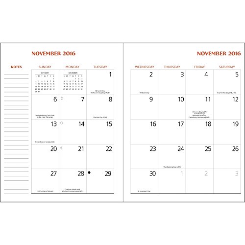 Includes July 2016 to December 2017; full year 2016, 2017,and 2018 views; international dialing codes; time differences; table of weights and measures; zodiac signs; and to-do list pages.