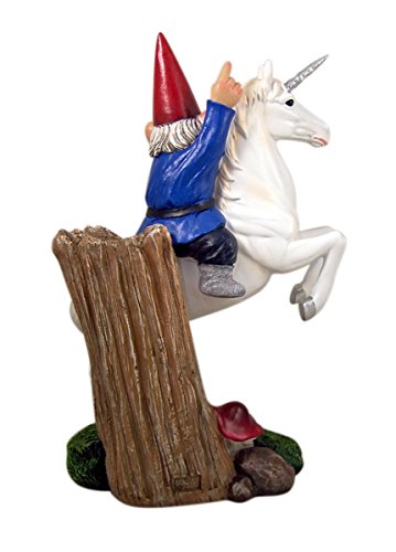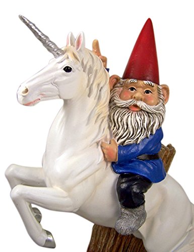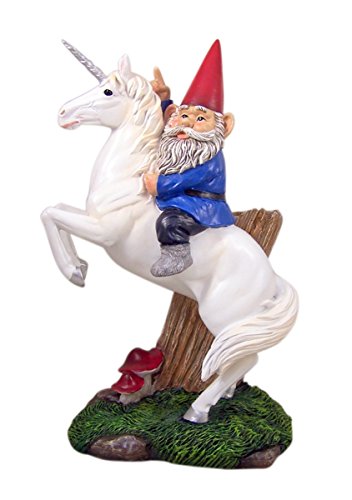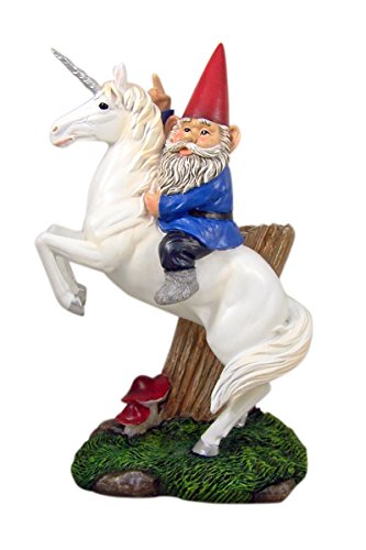 Magical Adventure Garden Gnome on Unicorn Lawn Figurine, 13 1/2 Inch