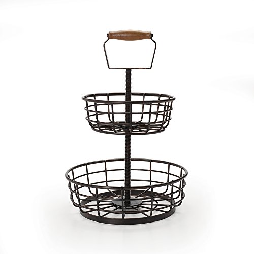 Gourmet Basics by Mikasa Adjustable 2-Tier Metal Basket, Antique Black
