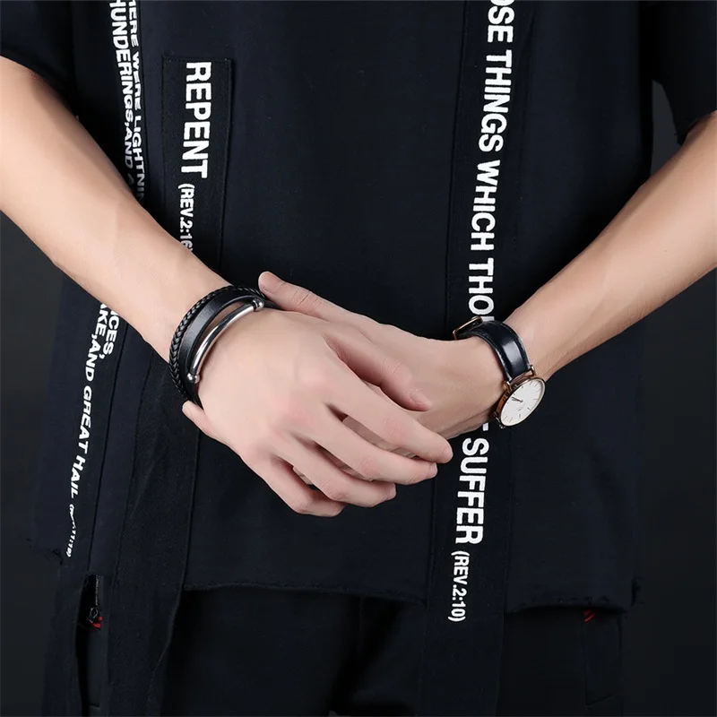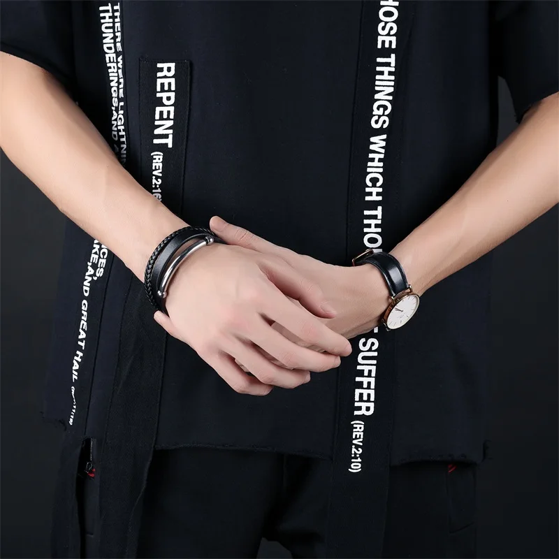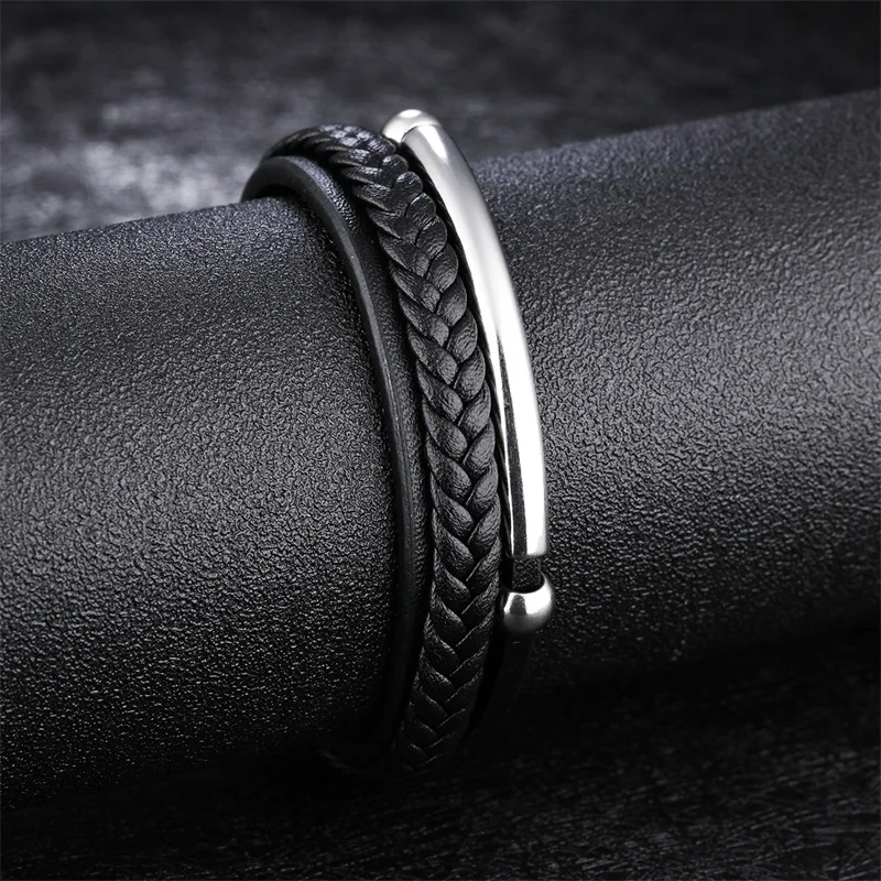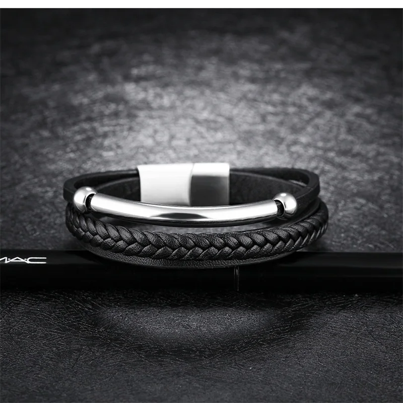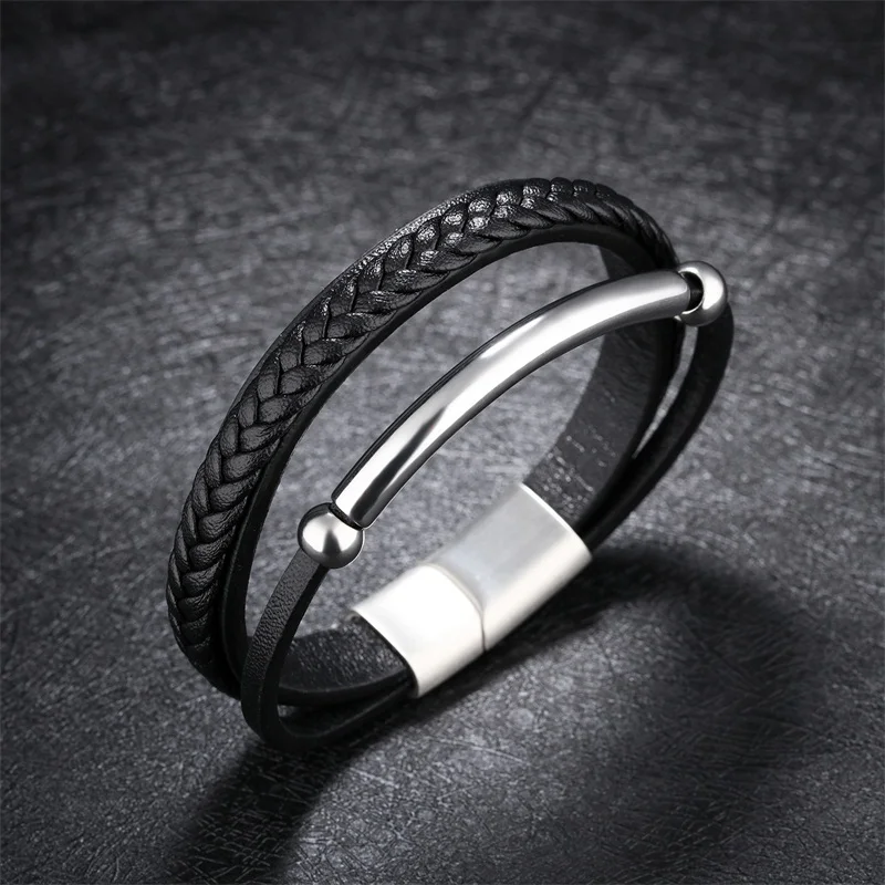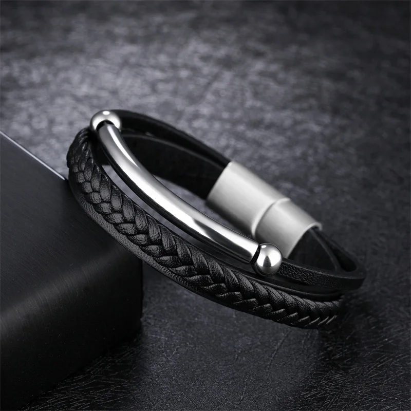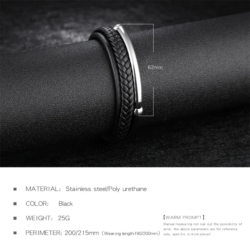 Style:black leather bracelet for men