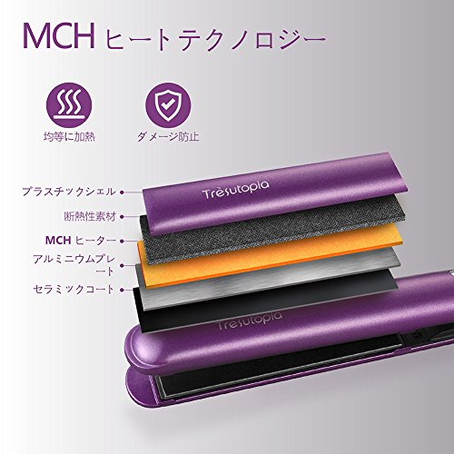 Tresutopia 스트레이트 고데기 고데기 남녀 겸용 MCH 가열 유닛 130 °C ~ 230 °C Lepunzel S01 (퍼플)