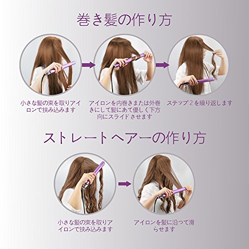 스타일리시한디자인: 경량으로 컴팩트한 보랏빛의 바디는 메탈릭인 마무리로,매력적인 아름다움을 제공합니다.플레이트는,머리를 확실히 사이에 둘 수 있는 바와 같이(하도록)《피탓》과 밀착합니다.안정 한 온도를 제공하고, 머리카락에 균등하게 열을 분배하고, 머리카락에 데미지를 주지 않습니다.