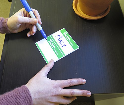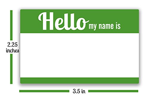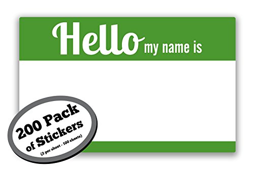 200 Pack of Green "Hello My Name Is" Stickers. Adhesive tested & lasts full day. Name Tag Labels are 3.5 by 2.25 in. Badges great for kids, employees, reunions, professionals, parties, school, events.