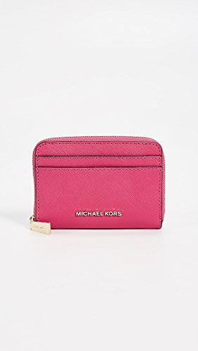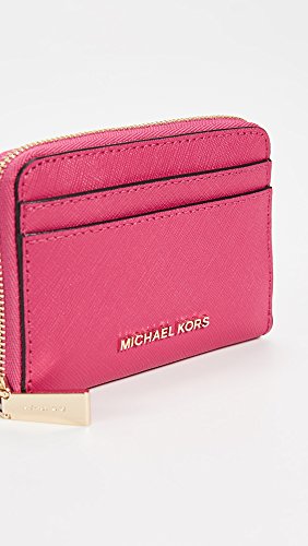 Product Description Offering a compact everyday size, the Michael Kors Jet Set card holder is made from saffiano effect leather for durability and glamour. 0