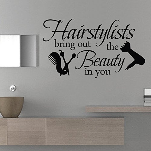 -. Title : Wall Decal Decor Hairstylists Bring Out The Beauty In You - Hair Salon Wall Sticker Wall Mural Wall Graphic Beauty Salon Shop Decor (Black, 13"h x22"w)