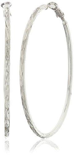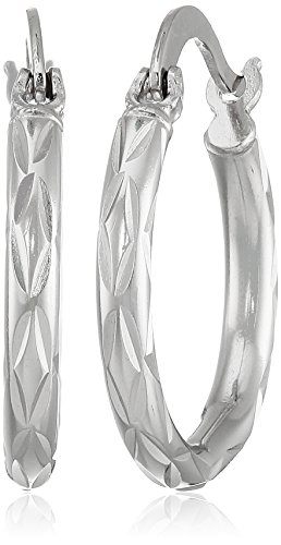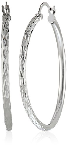 -. Feature : Hoop earrings in rhodium-plated 925 sterling with diamond-shape etchings / Imported