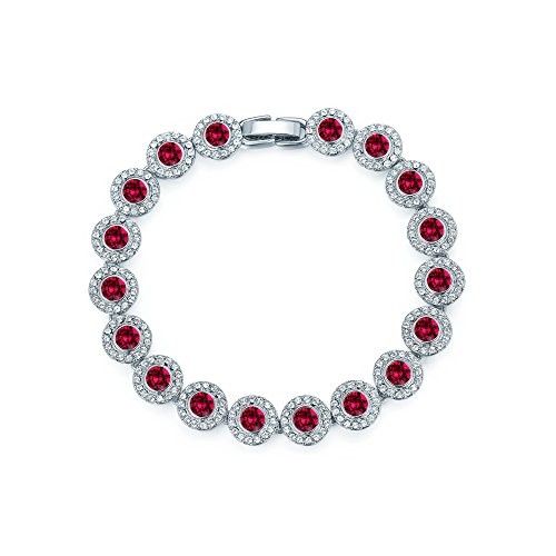 -. Binding : Jewelry -. Brand : My Jewellery Story -. Department : womens -. Feature : Add instant sophistication to any outfit with this timeless halo design, day or night. / Featuring a stunning Swarovski Crystal center stone with halo pave surrounding it. / Each Swarovski Crystals are meticulously handset and the design finished Rhodium Plated. / 100% Nickel Free, hypoallergenic and comforms to EU Nickel Regulations / Comes enclosed within a soft and luxurious MYJS branded velvet drawstring bag. -. Label : MYJS -. Manufacturer : MYJS -. Model : 3-1055RRBY-S -. MPN : 3-1055RRBY-S -. PackageQuantity : 1 -. PartNumber : 3-1055RRBY-S -. ProductGroup : Jewelry -. ProductTypeName : FASHIONNECKLACEBRACELETANKLET -. Publisher : MYJS -. Studio : MYJS -. Title : MYJS Angelic Tennis Bracelet Rhodium Plated with Ruby Red Swarovski Crystals, Bridal Wedding Bridesmaid Gift