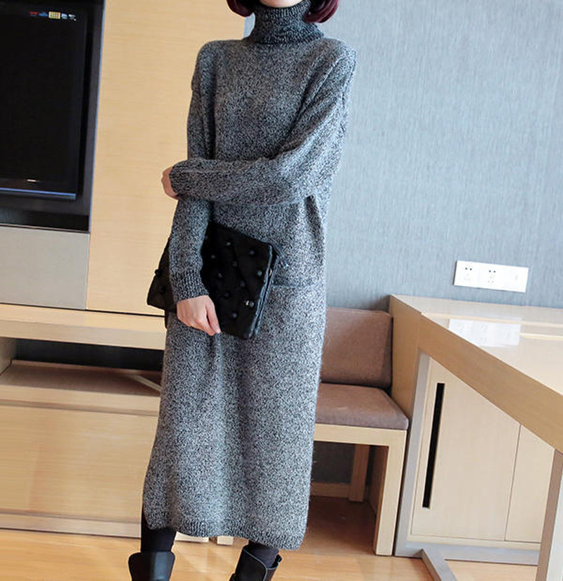 ♢ポイント♢ ゆったりと着れるおしゃれなニットワンピースです。 ハイネックで暖かく、小顔効果も◎