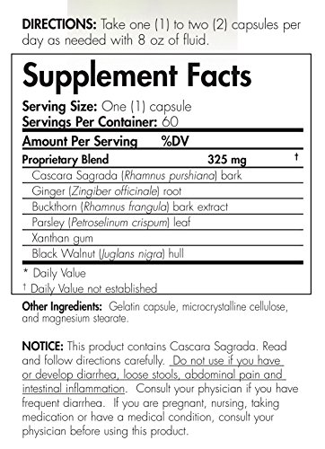 Includes black walnut and alder buckthorn to promote healthy regularity and elimination