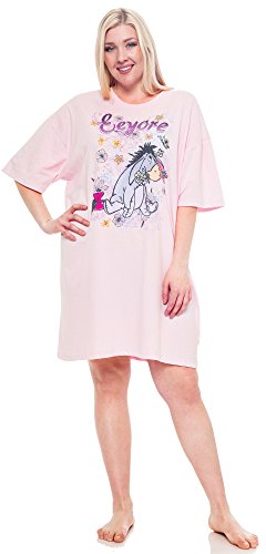 Winnie the Pooh character Eeyore printed on the front of these night shirts or coverup - for sleeping or wear over a bathing suit to the beach. One size fits most. Light pink, 100% cotton, crew neck and short sleeves. Machine was cold and tumble dry low.Feature