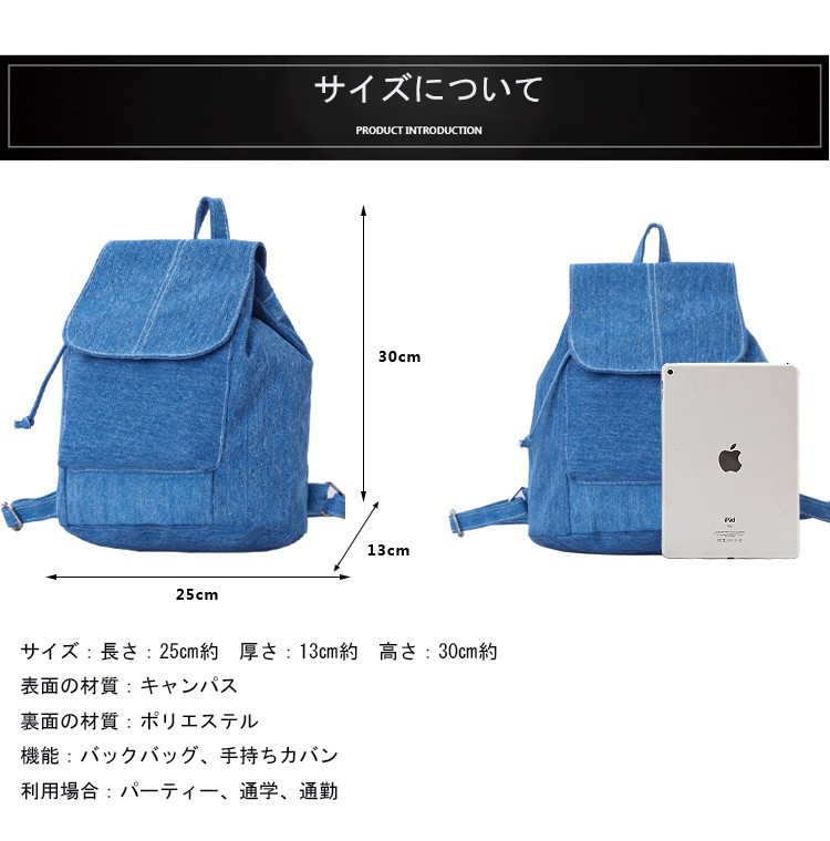 材質:表面:キャンパス 裏面:ポリエステル色:ブルー、ブラック、グリーン重量:300サイズ:長さ:25cm約 高さ:30cm約 厚さ:13cm約重量:300G約商品内容:1xバックバッグ 特徴:【高品質】高品質なキャンパスとポリエステルで作って、バッグの品質が保証です。【大容量】大容量のバックバッグですが、ノードパソコン、ipad、本などがすべて収納できます。【簡単なデザイン】簡単なデザインなので、通勤はもちろん通学?ビジネスなど幅広いシーンで活躍!