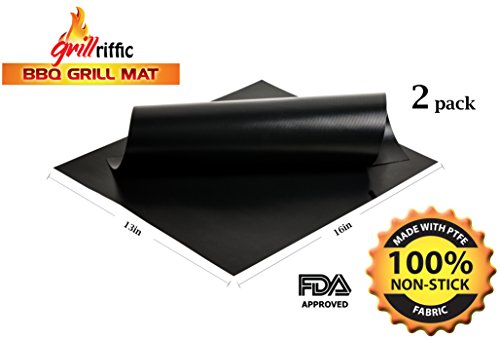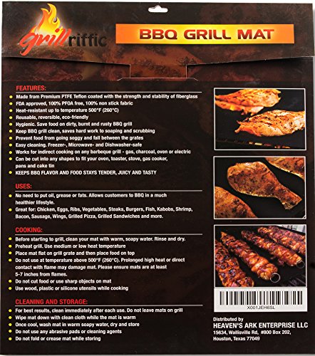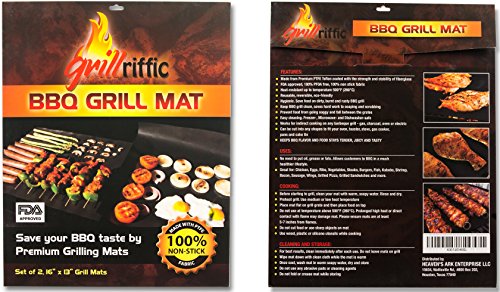 Grill Mat, Baking Mat, BBQ Grill Mat – 100% Non-Stick BBQ Grill Mats By Grill-Riffic - Oven/Microwave Cooking Mat, Heavy Duty, Reversible, Reusable, Heat Resistant, Premium Material, Dishwasher Safe