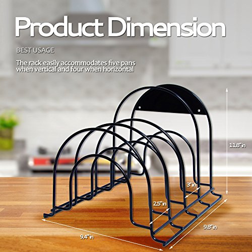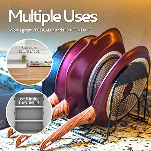 Are you tired of looking at a giant mess in your cabinets??Your search for the ultimate kitchen organization solution is finally over. When you purchase from us today, here are some of the things you can look forward to... The Miriga Life Pot Pan Organizer is the best way to organize your pots, pans, cast iron, lids, serving trays, and baking dishes on the market. You don't need to break your back by digging through your cabinets looking for cookware. It's as simple as reach, grab, and get cooking! Huge Time and Space Saver ? Our product is perfect for keeping all your cookware neatly organized. That saves you cabinet space... But it also saves you time. You won't have to lift heavy pots pans to reach the one on the bottom. With our stacking design, you can easily grab the pan you want, in no time. Best Usage ? The rack easily accommodates five pans when vertical and four when horizontal.? Dimensions: 9.4" L x 11.8" W x 9.8" H, Compartments height is between 2.5' and 3". Satisfaction Guarantee ? Our pan rack is built using durable, strong, and stable high-quality materials. We're so confident you'll love our product that we stand behind it with a satisfaction guarantee. You'll have a full manufacturer 30-day money back guarantee with a 1-year free replacement warranty. If you aren't completely satisfied, let us know and we will refund your full purchase. You have nothing to lose! But don't forget about your lids... You can keep them in order, too! Just purchase TWO of our organizers and use the other for lids! They work great for lids of all sizes. Click Add to Cart and eliminate kitchen clutter today! 0 |