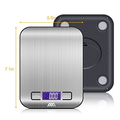Toplus Digital Food Scale, Stainless Steel Easy to Clean Multifunction Kitchen Scale, Weighing from 1g/0.002lbs to 11lbs (Batteries Included)