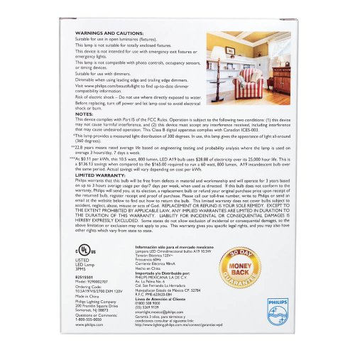 Philips 452978 60-Watt Equivalent SlimStyle A19 LED Light Bulb Soft White, Dimmable