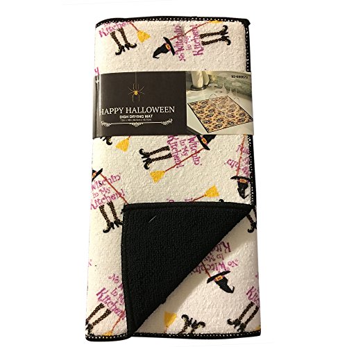 -. Feature : Halloween Themed REVERSIBLE DRYING MAT. Solid Textured side is Black. / PROVIDES A SOFT, ABSORBENT SPOT for wet plates and glasses to dry. / PERFECT FOR EASY DECORATION of Home, Office, Daycare, Church Kitchens!